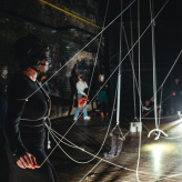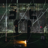 Bildende Kunst, Installation, Ritual, Musik, Gesang und Performance verschränken sich zu einer interdisziplinären Performance.